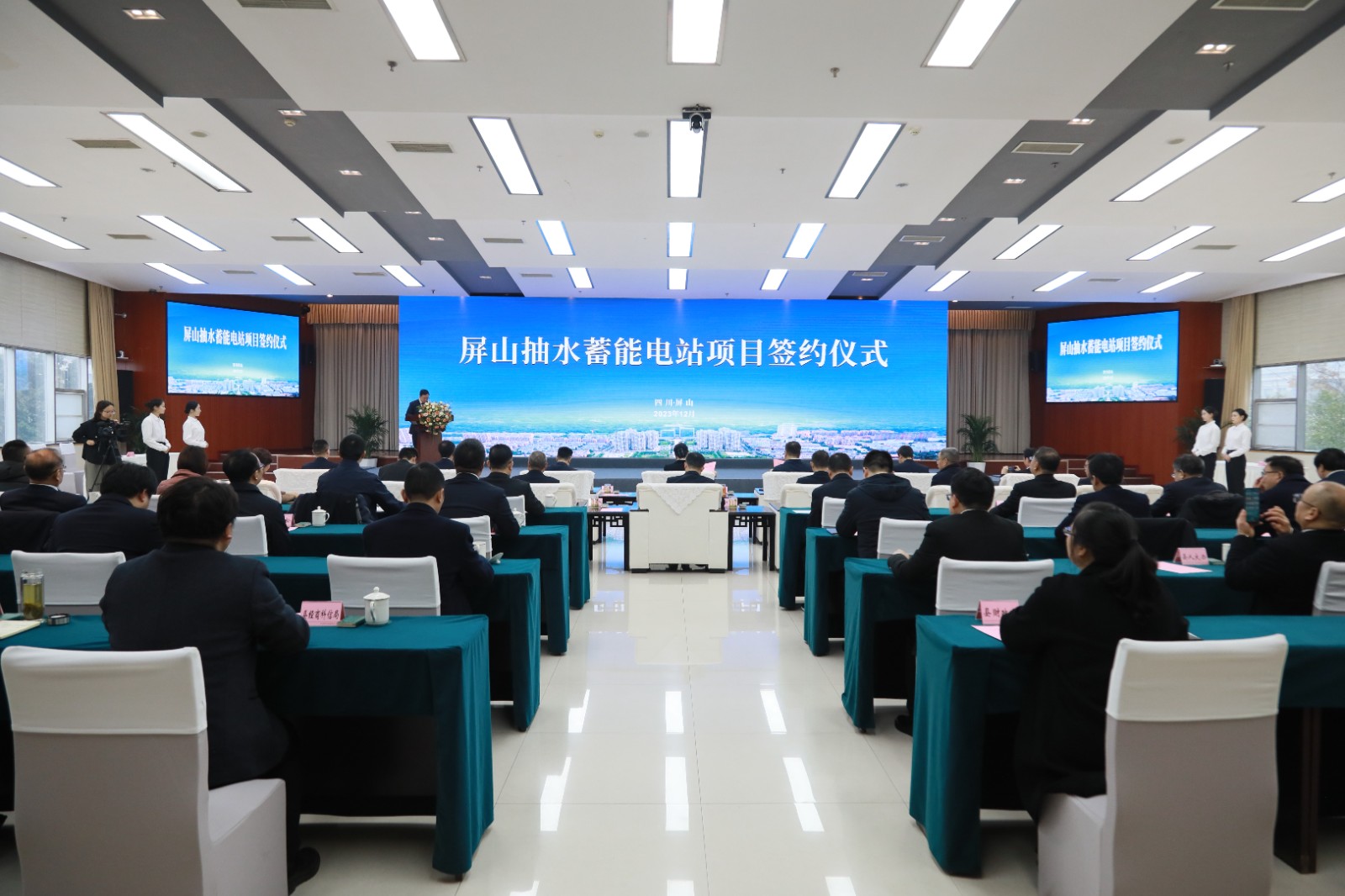 12月29日,屏山縣人民政府與四川川投能源股份有限公司、雅礱江水電開發(fā)公司、葛洲壩集團(tuán)聯(lián)合體簽訂屏山抽水蓄能電站項(xiàng)目投資合作協(xié)議。川投集團(tuán)黨委書記、董事長,川投能源董事長吳曉曦;川投集團(tuán)黨委副書記、副董事長、總經(jīng)理李文志;宜賓市委副書記曾令舉;市政府副市長周文宇;川投集團(tuán)副總經(jīng)理張昊;葛洲壩集團(tuán)三峽建設(shè)公司副總經(jīng)理許華;葛洲壩集團(tuán)市場投資開發(fā)部副總經(jīng)理李博;中國電建集團(tuán)成勘院副總經(jīng)理鞠其鳳;川投能源黨委書記、副董事長、總經(jīng)理?xiàng)詈椋淮ㄍ都瘓F(tuán)總經(jīng)理助理、戰(zhàn)投部部長田傳平;雅礱江水電開發(fā)公司副總工程師范林;市能源局副局長邵睿;屏山縣委書記代軍;縣委副書記、縣長趙丹;縣人大常委會(huì)主任冷遠(yuǎn)林;縣政協(xié)主席林敏;縣委副書記羅昕出席簽約儀式。