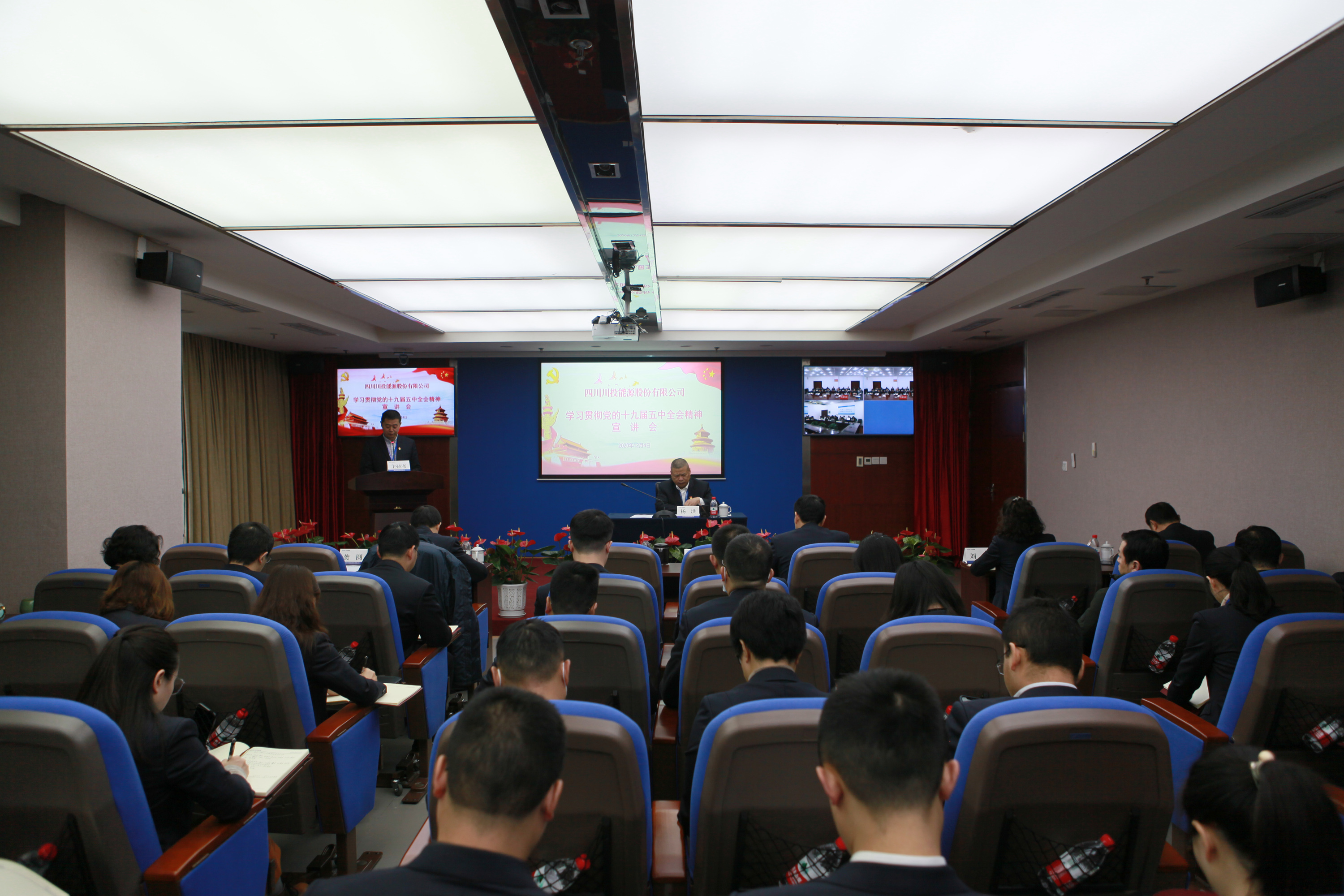 為全面深入學習十九屆五中全會精神,12月4日,川投能源黨委采用線上、線下方式召開專題宣講報告會。公司本部全體員工、所屬公司中層及以上管理人員、全體黨員參加會議。
