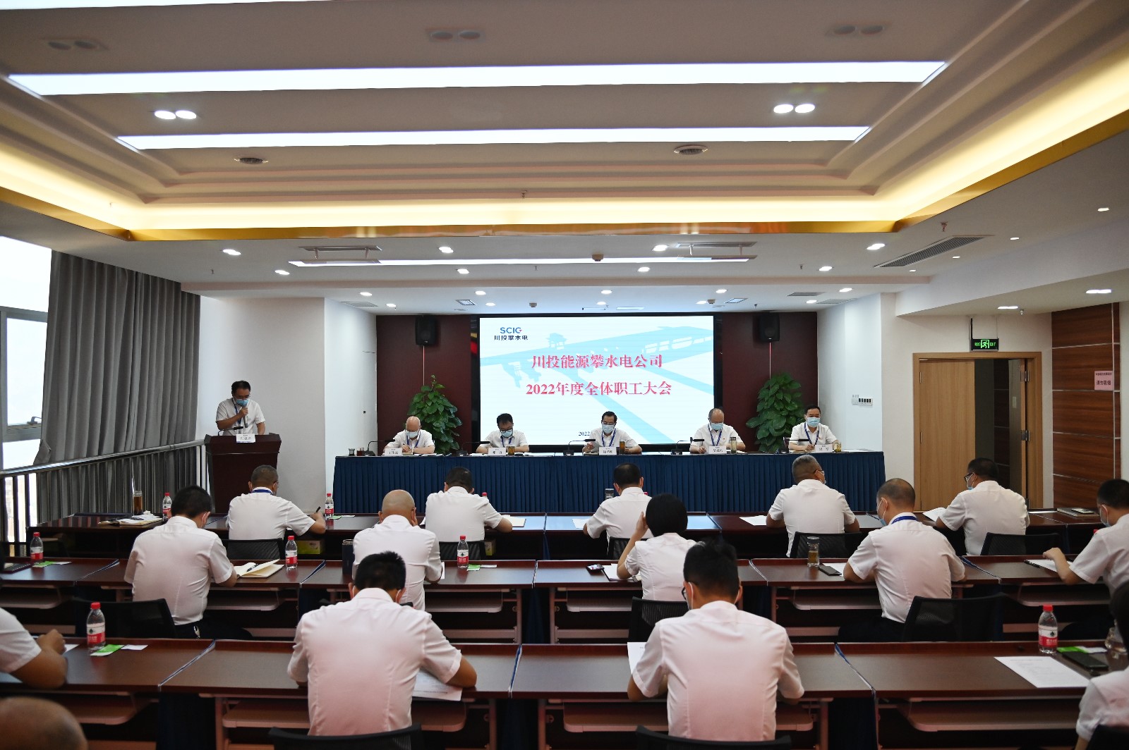 為維護全體職工合法權益,打造和諧穩定的職工隊伍,促進公司高質量發展,近日,攀水電公司工會組織召開了2022年度全體職工大會,本次大會由工會組織委員、綜合管理部經理向毅主持,應出席正式職工共40人,因公請假2人,實到38人。大會嚴格落實疫情防控要求,設一個主會場、兩個視頻分會場;為了嚴肅防疫要求及會議紀律,紀檢工作部新設了會風監督崗,對各會場的會風會紀進行監督。