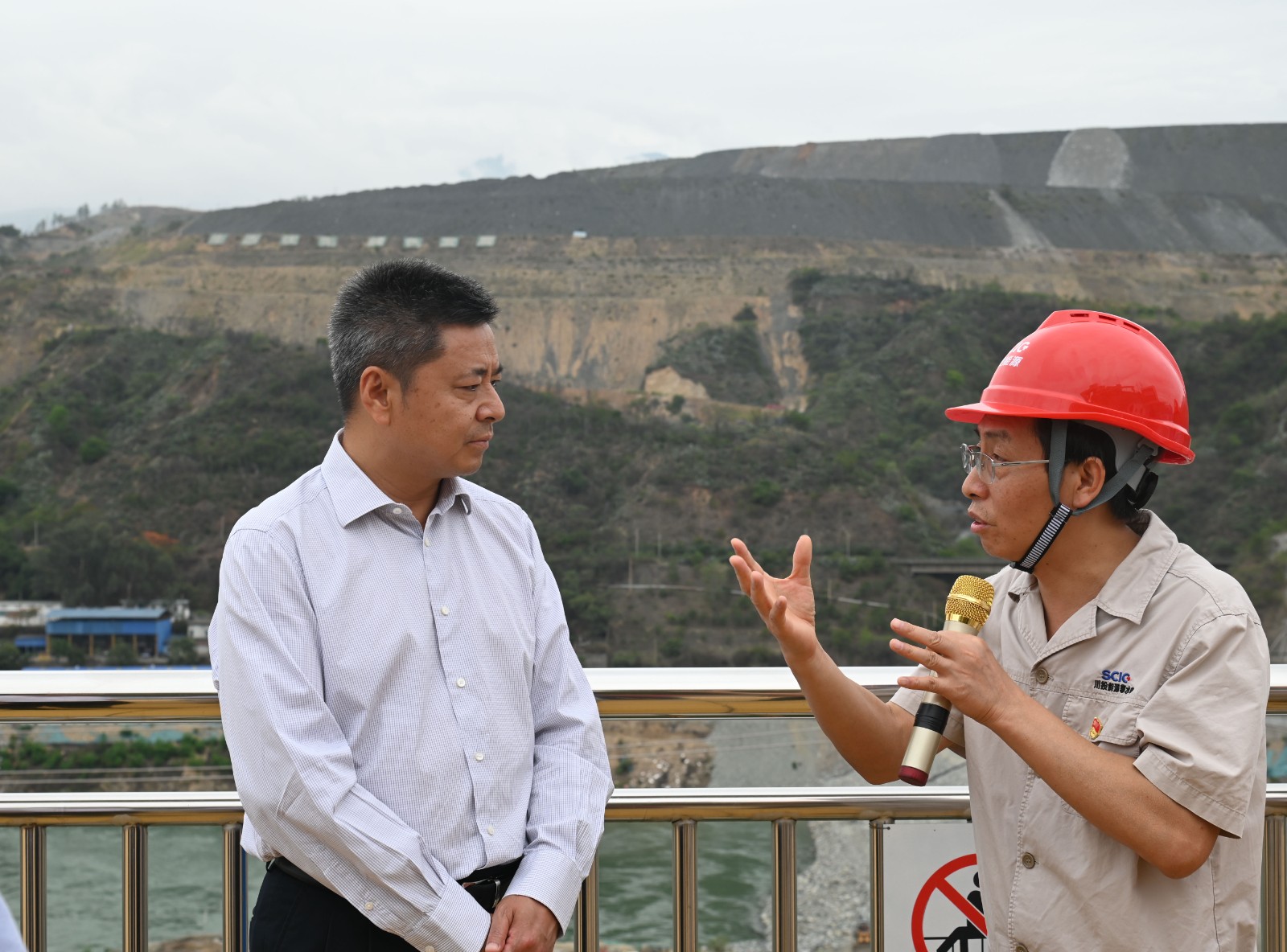 在施工變電站觀景平臺,徐孝剛詳細匯報了銀江水電站工程建設、防洪度汛、地災隱患排查治理、防洪搶險應急演練及庫區防護工程施工等方面工作情況,重點介紹了二期基坑、銀江大橋及庫區防護工程等重要部位汛期注意事項,仔細講解了各部位防洪度汛應急處置流程。