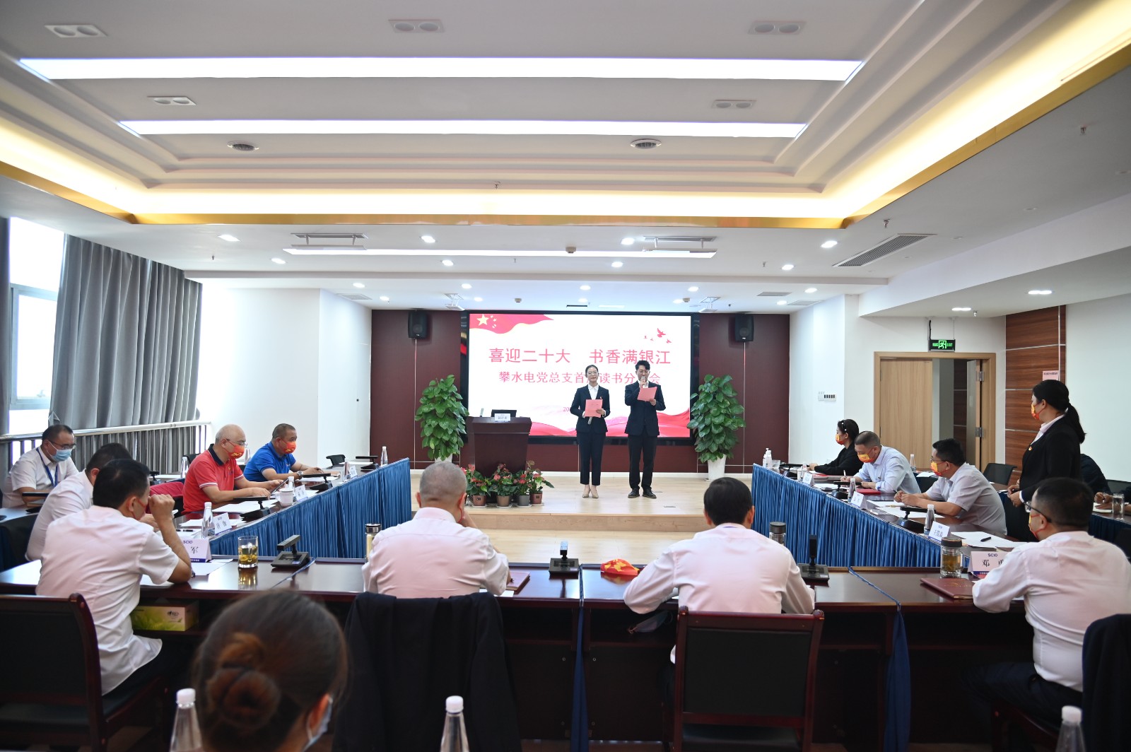 日前,為慶祝黨的二十大勝利召開,鼓勵全體黨員、職工學黨史、強信念,同心建功新時代,踔厲奮進新征程,攀水電黨總支組織開展了“喜迎二十大、書香滿銀江”讀書心得分享活動,各黨支部、參建單位黨員、職工共40人參加此次活動。川投能源副總經理、 攀水電公司黨總支書記、董事長、攀新能源公司董事長徐孝剛以及公司在攀領導、長江設計、水電五局、水電七局、二灘建設項目部等主要領導參加此次活動并擔任評委。