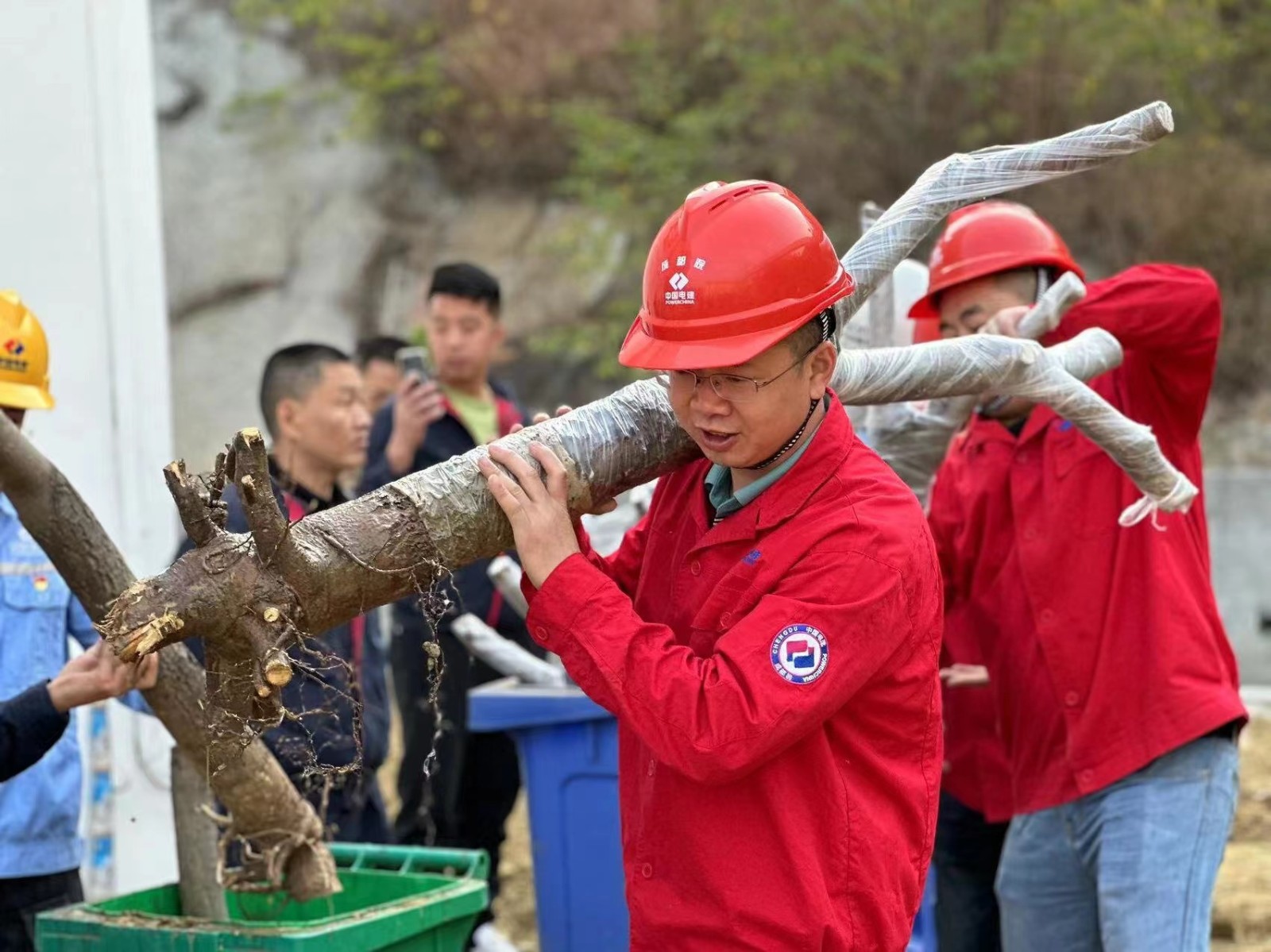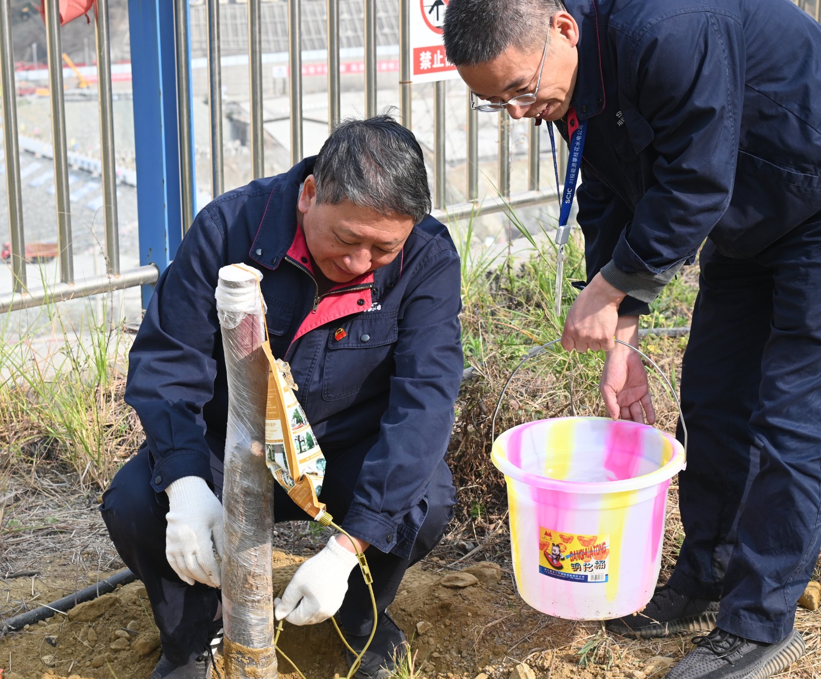 隨后,在金河村芒果專家的專業輔導下大家積極動手、挖坑種樹,各支部責任田呈現一派緊張有序的勞動景象,參加植樹活動的黨員、職工個個熱情洋溢、干勁十足,有的拿鐵鍬、有的運樹苗,你追我趕,每個環節認真到位,到處都是忙碌的身影和勞動的歡聲笑語,各支部相繼完成植樹目標,并在專家的驗收后簽名、掛牌,一顆顆共建之樹在大黨建宣傳陣地安家落戶。