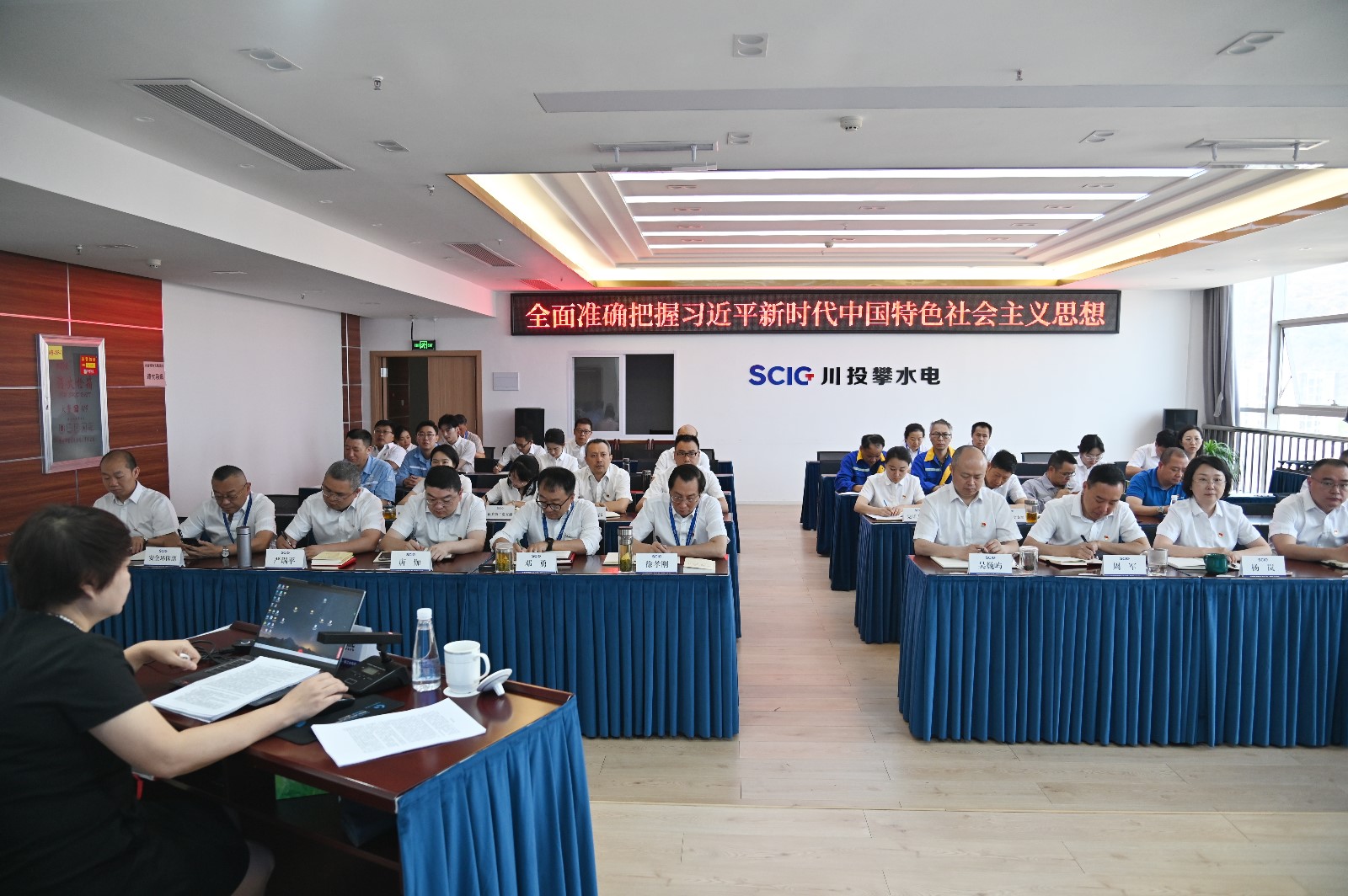 4月21日上午,按照川投能源黨委的總體部署,在攀水電黨總支深入開展學習貫徹習近平新時代中國特色社會主義思想主題教育讀書班期間,為豐富學習形式和學習內容,攀水電公司開展了專題輔導《全面準確把握習近平新時代中國特色社會主義思想》,邀請攀枝花市委黨校副校長、市政協委員李燕授課,公司主題教育讀書班全體成員,公司黨員及非黨員職工,各聯建支部黨員代表共40余人參加。