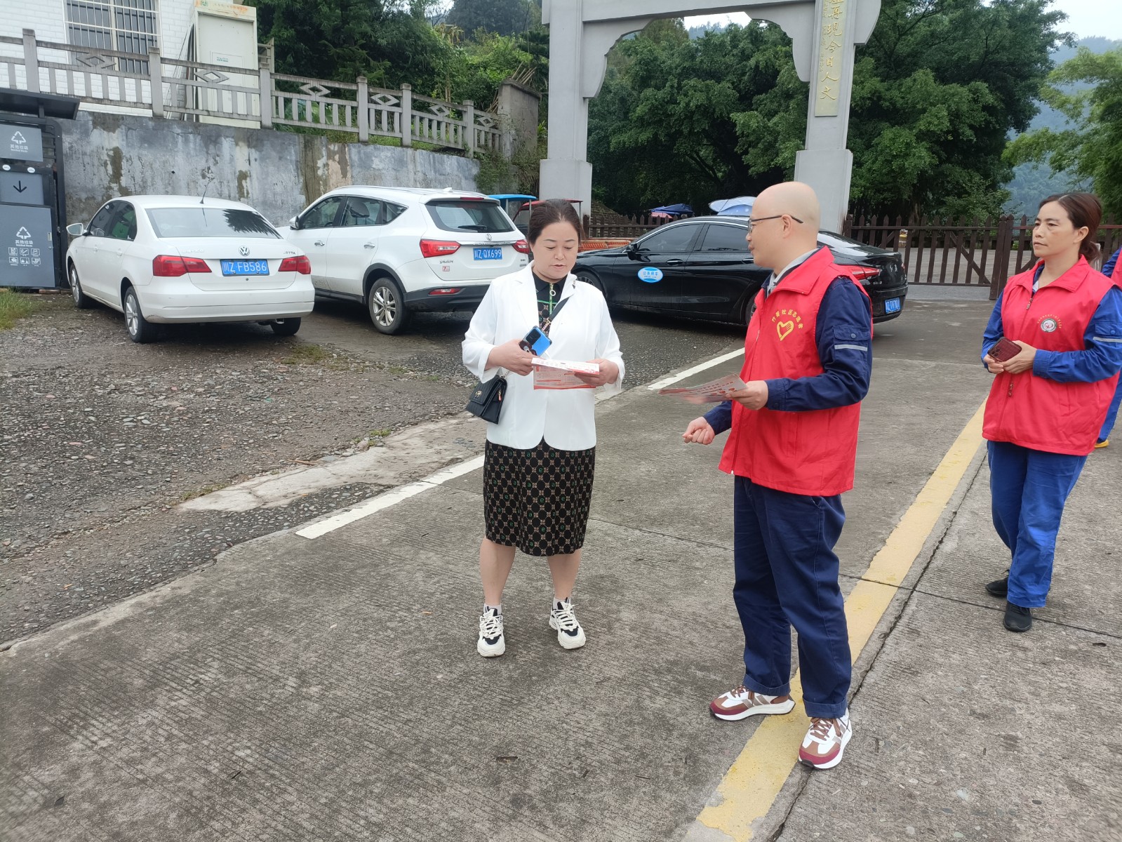 在槽漁灘風景區(qū)入口,面對到來的游客,支部黨員張華耐心地為游客提供景區(qū)景點、游覽路線、交通信息等咨詢服務,確保游客能夠順利游覽景區(qū)。黨員鄭健在景區(qū)停車場區(qū)域,協(xié)助景區(qū)工作人員維持交通秩序,引導游客有序停車,確保游客安全與景區(qū)秩序平穩(wěn)。黨員何曉紅、發(fā)展對象楊杰主動向游客普及國家安全與森林防火知識,引導廣大游客自覺維護國家安全,自覺遵守森林防火規(guī)定。