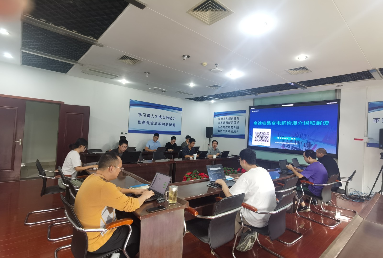 楊昊詳細(xì)解讀了新檢規(guī)的出臺背景、具體內(nèi)容和重大意義。他指出,新檢規(guī)落實(shí)國鐵集團(tuán)黨組關(guān)于牽引變電所無人化的工作部署,適應(yīng)信息化、智能化發(fā)展進(jìn)程,將牽引變電所運(yùn)行管理、運(yùn)維修試、應(yīng)急保障等規(guī)則予以完善,是交大光芒高鐵供電智能運(yùn)維系列產(chǎn)品的根本遵循。他強(qiáng)調(diào),研發(fā)中心要深入研究對標(biāo)新檢規(guī),對現(xiàn)有運(yùn)維產(chǎn)品進(jìn)一步智能升級改造,研發(fā)更符合時代需求的、更加智慧的實(shí)時監(jiān)測和科學(xué)診斷系統(tǒng),以新質(zhì)生產(chǎn)力賦能中國高鐵進(jìn)一步提升供電可靠性。