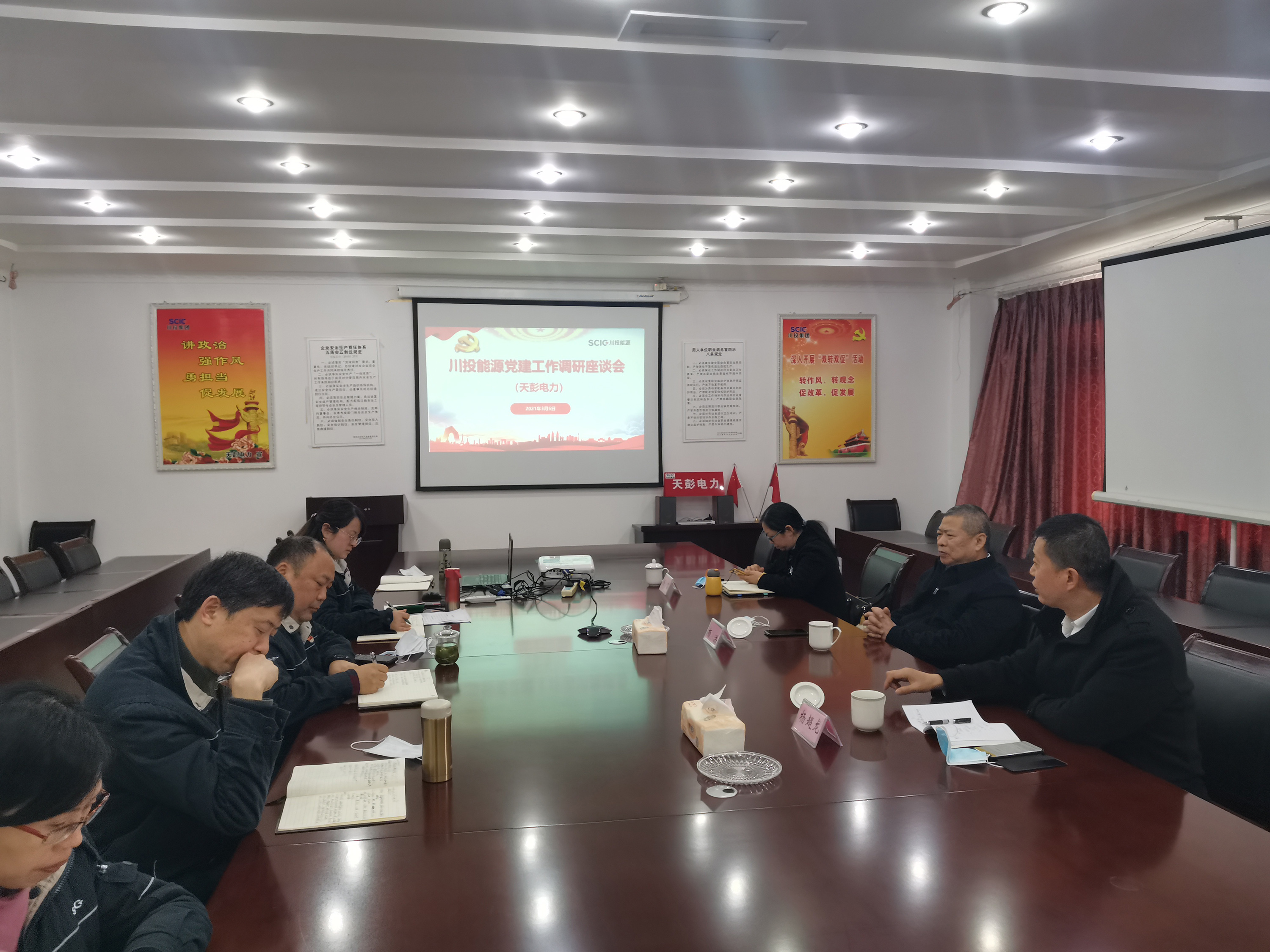 為扎實推進基層黨建工作任務落實落地落細,面對面、點對點指導解決工作推進中存在的難題和問題,3月5日,川投能源黨委書記、副董事長、總經理楊洪帶隊前往到天彭電力開展黨建工作調研。天彭電力班子成員、相關部門參加調研座談會。