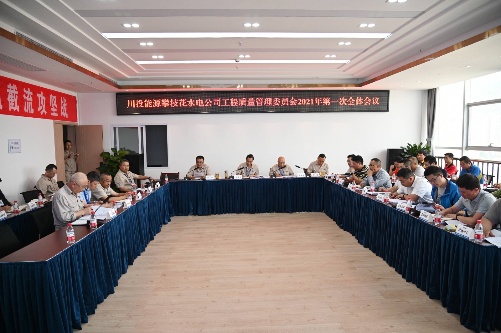 4月16日,川投能源攀水電公司召開工程質量管理委員會2021年第一次全體會議。會議由公司黨總支副書記、總經理、質委會主任蔡承德主持,川投能源公司副總經理、公司董事長、黨總支書記、質委會主任徐孝剛及公司領導班子成員、各職能部門負責人、參建單位領導和主管質量負責人共計30余人參加會議。本次會議主要任務是總結銀江水電站工程2021年一季度工程質量管理情況,梳理并分析存在的不足,總結經驗教訓,明確2021年二季度質量管理目標,安排部署質量管理重點工作,提升質量管理水平,助力大江截流目標順利實現。